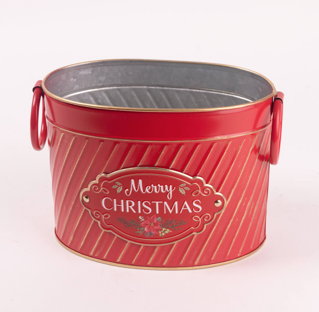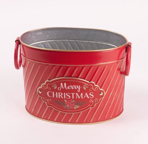 'Marry Christmas" bádog kaspó - Piros 20x15 cm