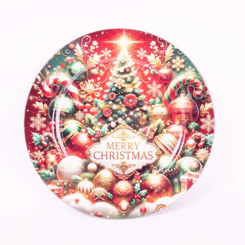 Karácsonyfás műanyag tálca - Piros 34 cm