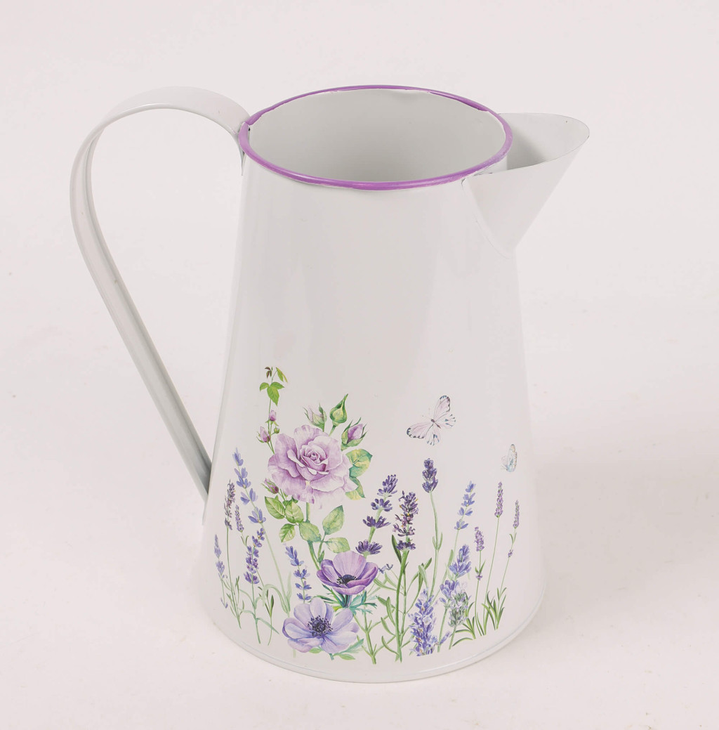 Lila Virágos bádog kiöntő - Fehér 20x17 cm