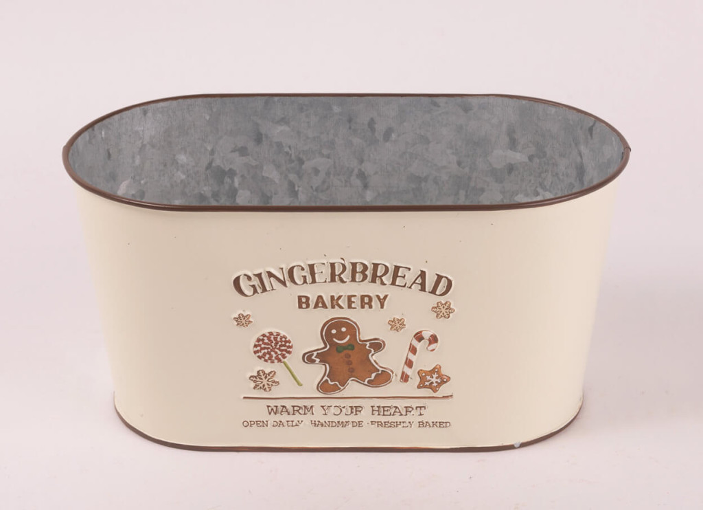 Mézeskalácsos ovális bádog kaspó - Fehér 13x26 cm