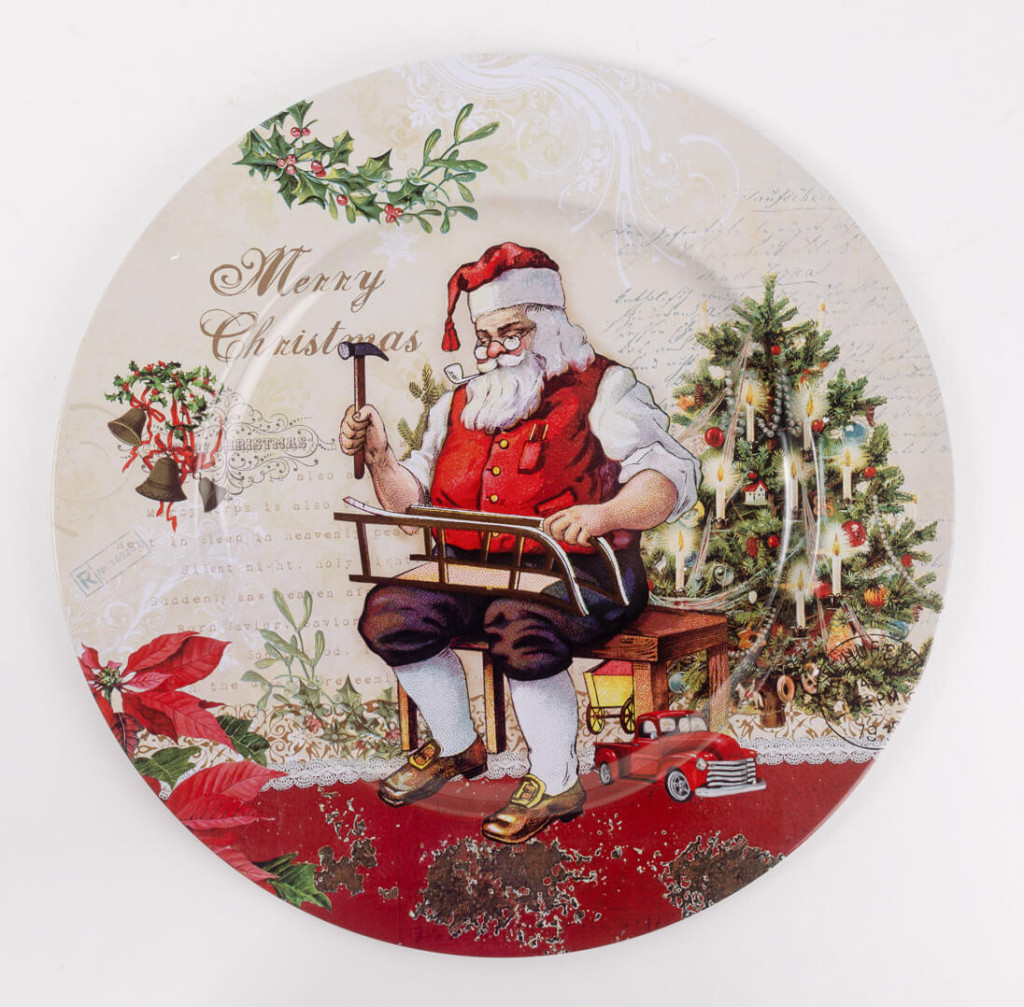 Retro Mikulásos bádog tálca - Fehér 34 cm