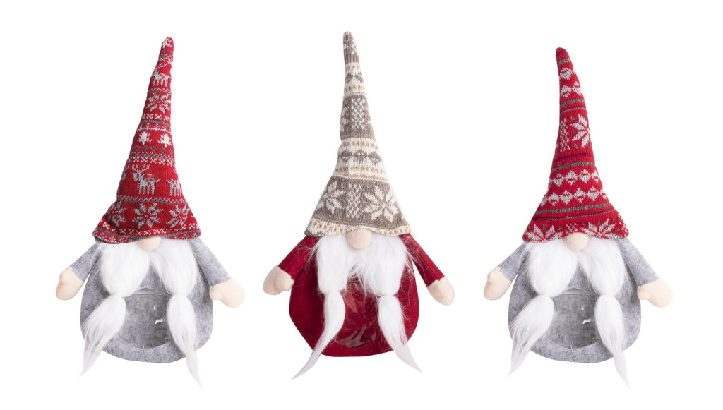 Textil szakálas manó + ajándéktartó - 3 színben 37 cm