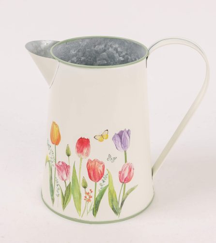 Tulipános bádog kiöntő - Fehér 20x17 cm